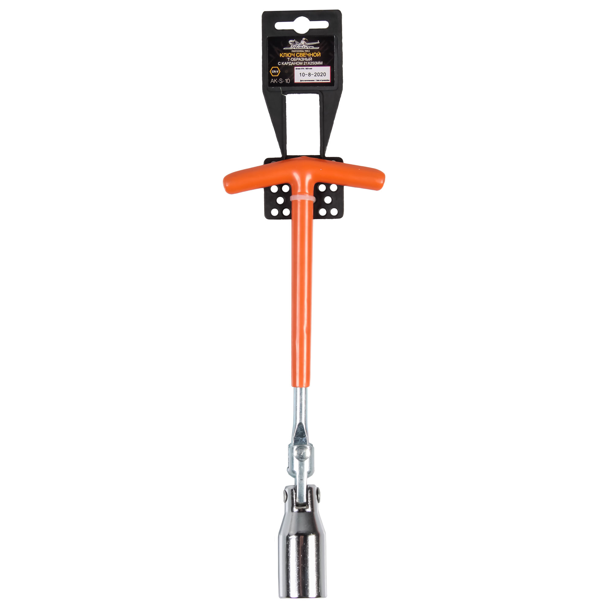 Ключ свечной Т-образный с карданом 21*250мм с резиновым фиксатором (AK-S-10)