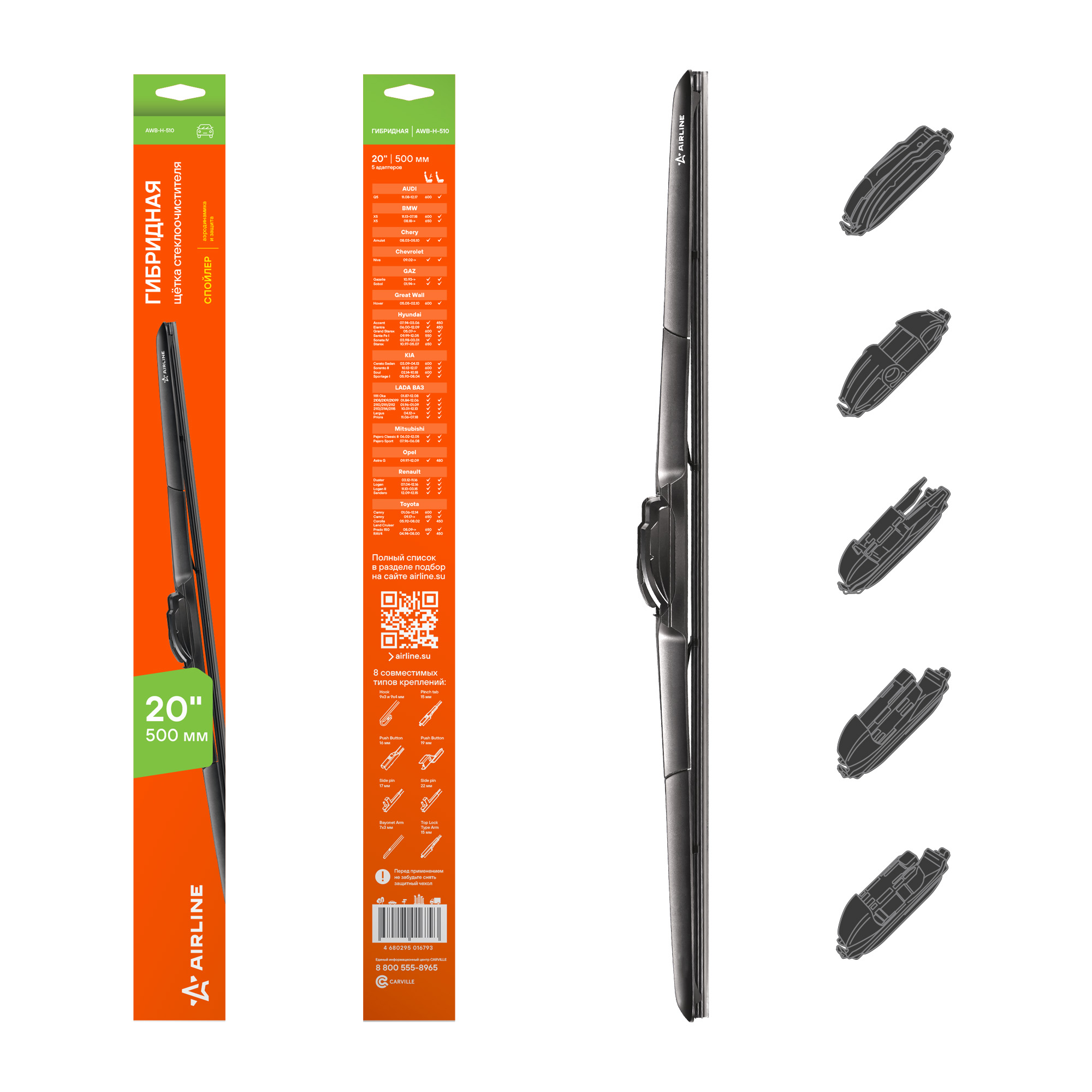 Гибридные щетки стеклоочистителя AIRLINE — это надежность и идеальная видимость в любую погоду. Благодаря сочетанию прочного каркаса и пластикового кожуха они равномерно прижимаются к стеклу, а аэродинамическая форма работает как спойлер, усиливая прижатие на высоких скоростях и обеспечивая стабильную очистку даже при боковом ветре. Резина выполнена по технологии Anti-age с частицами озона, что продлевает срок службы и сохраняет эластичность. Графитовое покрытие гарантирует мягкое, бесшумное скольжение без скрипов и повреждений стекла. В комплект входят пять адаптеров, подходящих для разных типов креплений, что делает щетки универсальными и удобными в установке. Они долговечны, обеспечивают надежное прилегание к стеклу и эффективны как в зимних, так и в летних условиях. Щетки стеклоочистителя AIRLINE — ваш выбор для чистого и безопасного обзора в любую погоду.