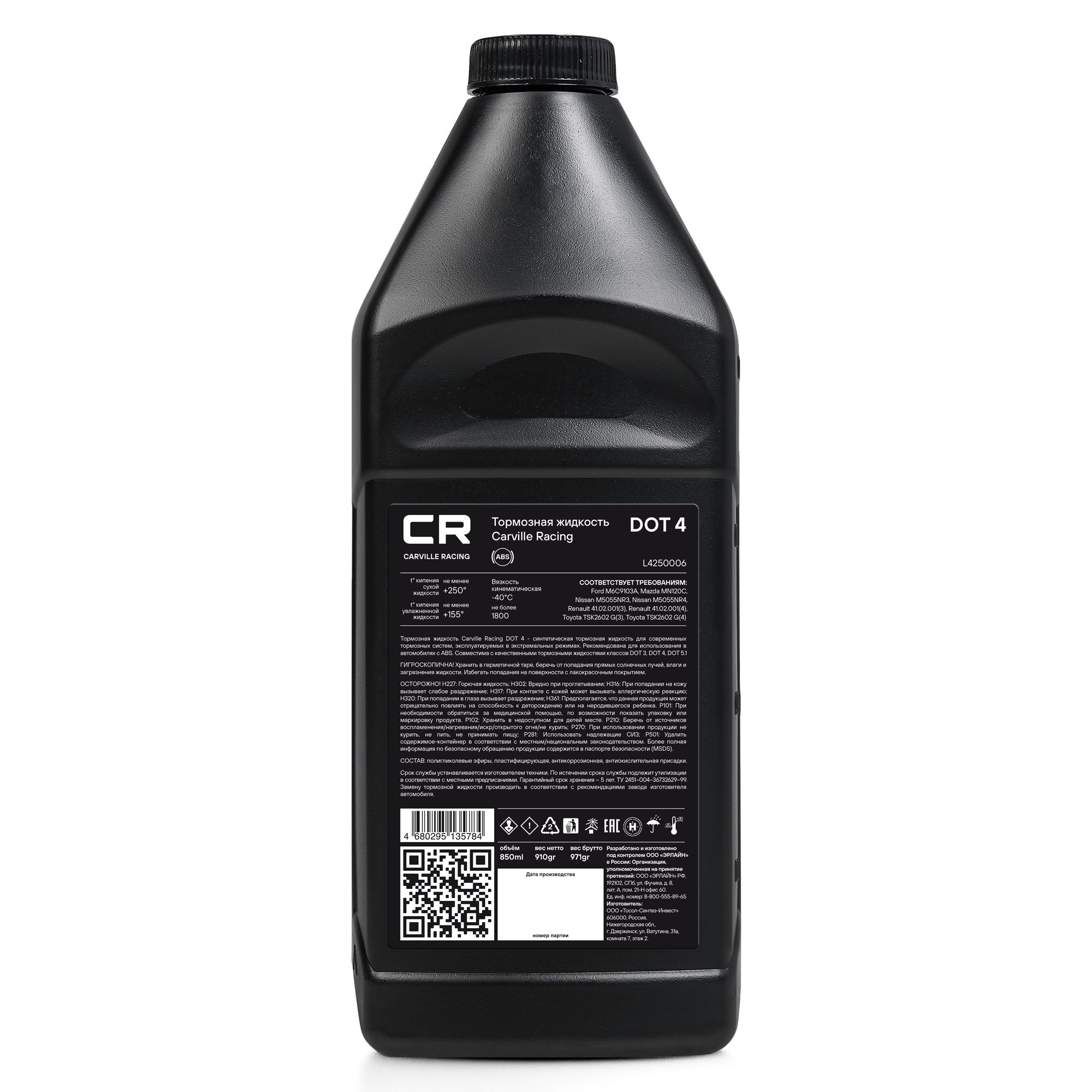 Совместимость Тормозная жидкость Carville Racing DOT 4 совместима с качественными тормозными жидкостями на гликолевой основе (DOT 3, DOT 4 и DOT 5.1 без силикона). Однако, для сохранения эксплуатационных характеристик тормозных жидкостей Carville Racing не рекомендуется смешивание с тормозными жидкостями других производителей. Не совместима с жидкостями на минеральной основе (LHM) и силиконовой основе (DOT 5).